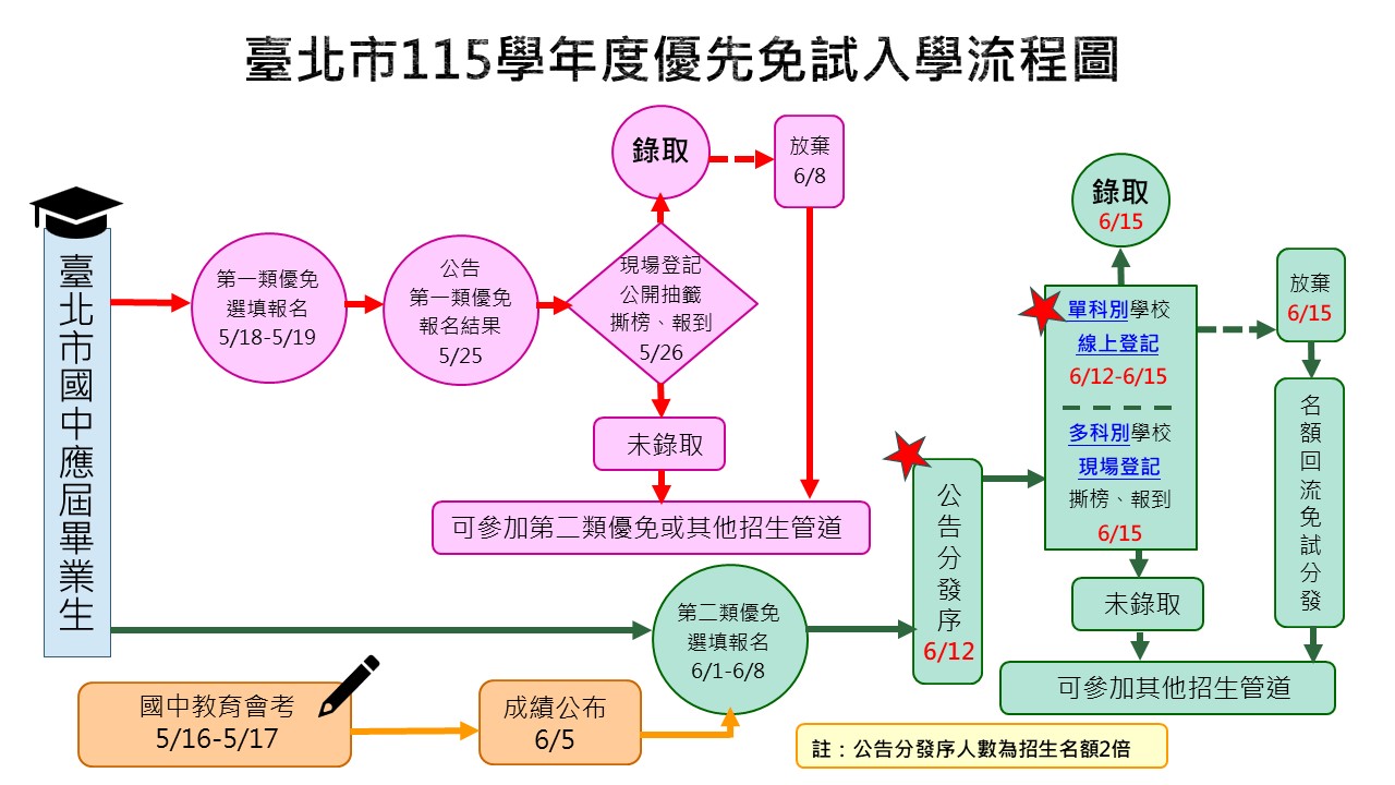 註:學校辦理名單以 「臺北市 115 學年度高級中等學校優先免試入學簡章」 公告為準。